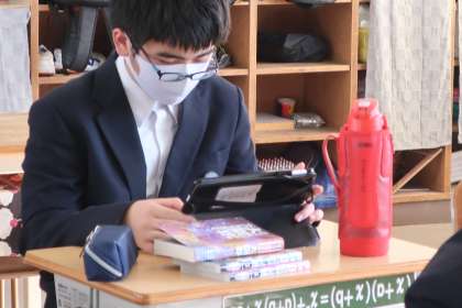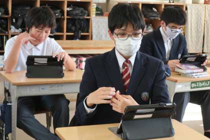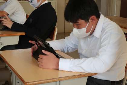 学習タブレットのアプリを使っての学習です。漢字や文章の読み込みなど、各自の課題をそれぞれが集中して進めていました。