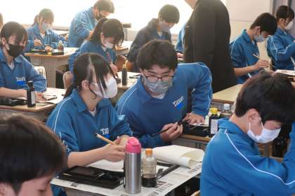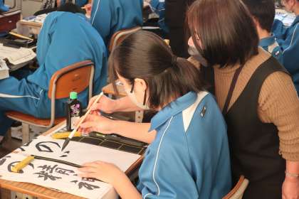 冬休み明けに実施される書き初め大会に向け、練習が始まりました。講師の先生をお招きしての活動です。冬休みもしっかり練習に励んでほしいと思います。