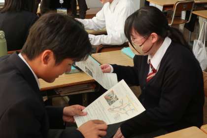 「外国旅行者に電車の乗り換え方法を正確に伝えよう」をテーマに、役割を分担して、一生懸命説明を行っていました。