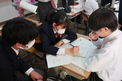 来週実施される学習診断テストに向け、類似問題に挑戦しました。なかなか正解にたどり着けない問題を中心に、解き方を確認し合っていました。
