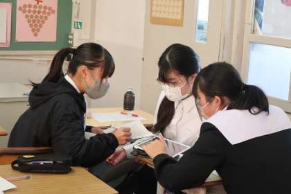 来週実施される学習診断テストに向け、類似問題に挑戦しました。なかなか正解にたどり着けない問題を中心に、解き方を確認し合っていました。
