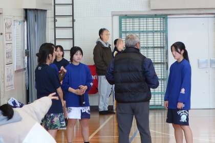 前林中学校に出向き、合同練習が行われていました。翌週に控えた大会に向け、両行とも試合前の最後の調整を行っていました。