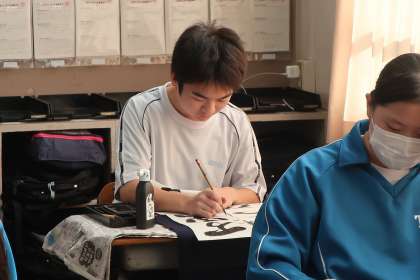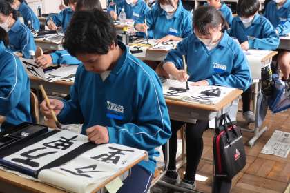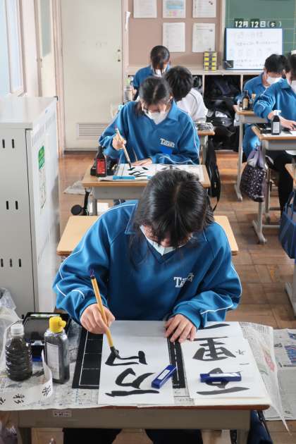 冬休み明けに実施される書き初め大会に向け、練習が始まりました。講師さんをお招きしての活動です。冬休みもしっかり練習に取り組めるよう、この授業で撮影した講師さんの解説動画を配信していく予定です。