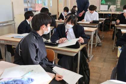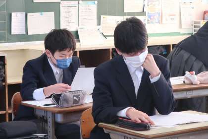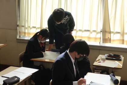 先日行われた学習診断テストの問題を改めて解き直していきます。正解できなかった原因を丁寧に確かめ、受験本番に向けての意識も高めていました。