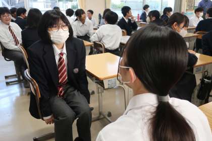 「どっちをえらぶ(二者択一)」に取り組みました。クラスによってお題もさまざまで、とても盛り上がっていました。ポイントは「メンバーに聞こえる声で話す」で、相手の話に興味を示しながら耳を傾けていました。