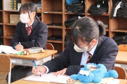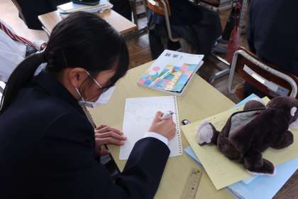 空間図形の学習で、立体の名称や特徴、辺や点の数などを確認していました。