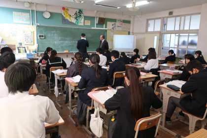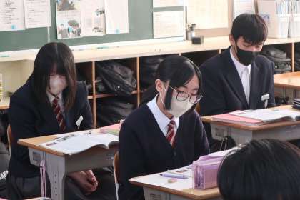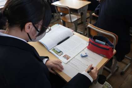 長文の読解に取り組んでいました。使用しているプリントの指示もすべて英語で記されています。