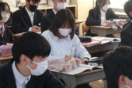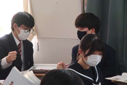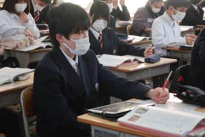長文の読解に取り組んでいました。使用しているプリントの指示もすべて英語で記されています。