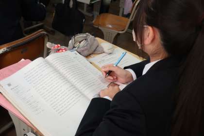 長文の読解に取り組んでいました。使用しているプリントの指示もすべて英語で記されています。