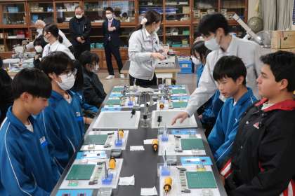 2年生を対象に開催された「燃料電池ミニカー教室」・1日目の様子です。