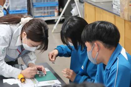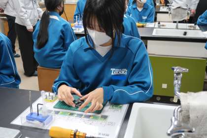 トヨタ自動車の皆さんの丁寧で分かりやすい説明のおかげで、水素・脱炭素化・ものづくりへの興味関心が高まったこの出前講座。未来の自分たちの生活を想像しながら、水素で走る燃料電池ミニカーの製作を体験していました。