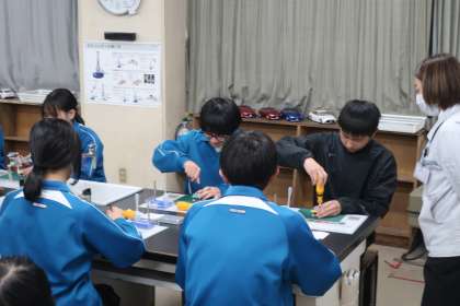 2年生を対象に開催された「燃料電池ミニカー教室」・1日目の様子です。
