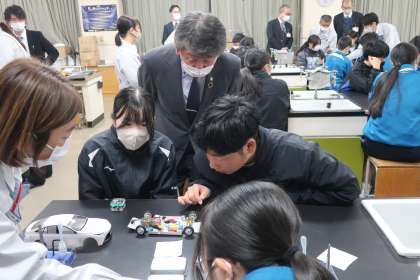 2年生を対象に開催された「燃料電池ミニカー教室」・2日目(昨日)の様子です。