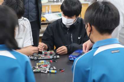 2年生を対象に開催された「燃料電池ミニカー教室」・2日目(昨日)の様子です。