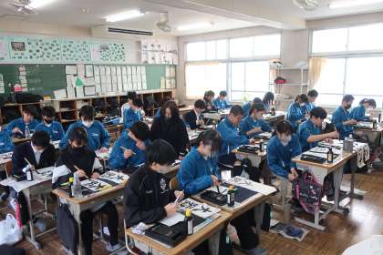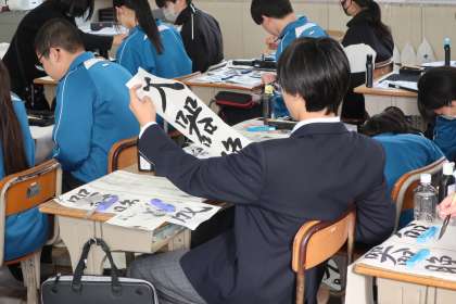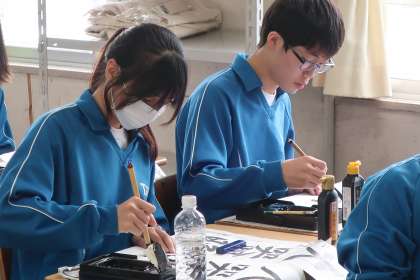 冬休み明けに実施される書き初め大会に向けた練習に取り組んでいました。講師の先生をお招きしての活動です。冬休みもしっかり練習に励んでほしいと思います。