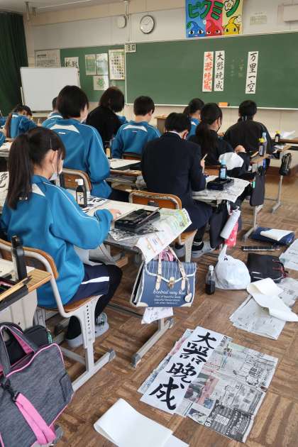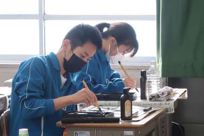 冬休み明けに実施される書き初め大会に向けた練習に取り組んでいました。講師の先生をお招きしての活動です。冬休みもしっかり練習に励んでほしいと思います。