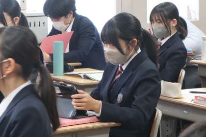 単元を通して学習したことをふまえ、「地球市民」として活動する今後の自分に向けてのメッセージを英語で作文にしていました。
