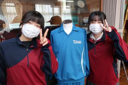 先日、3年生が「私たちも新しいジャージ着てみたい」と校長室を訪問してきました。