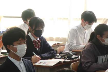 「情報型社会の実現」の学習で、エシカル消費の意味を確認し、持続可能な社会の発展と豊かさについて考えていました。