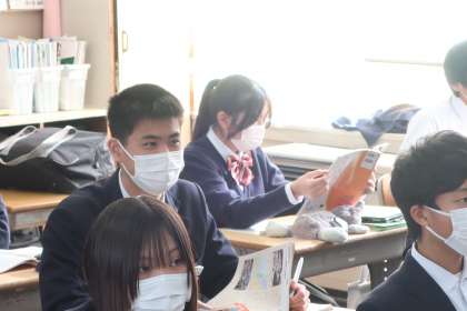 「情報型社会の実現」の学習で、エシカル消費の意味を確認し、持続可能な社会の発展と豊かさについて考えていました。