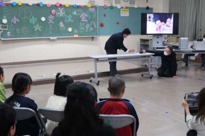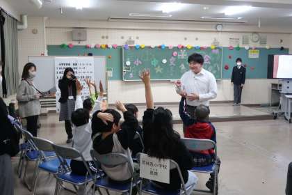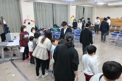 高岡中の校区にある2校の小学校(若林東小・若林西小)から小学生たちをお迎えしました。各学校の出し物やゲーム、中学生から小学生へクリスマスプレゼントを手渡すなど、楽しいひとときを過ごしました。