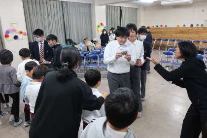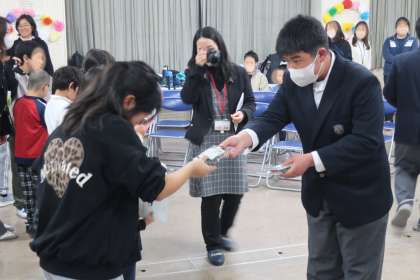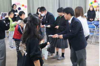 高岡中の校区にある2校の小学校(若林東小・若林西小)から小学生たちをお迎えしました。各学校の出し物やゲーム、中学生から小学生へクリスマスプレゼントを手渡すなど、楽しいひとときを過ごしました。