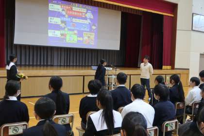講演では、天気に関する実験やクイズが盛り込まれ、興味深く楽しい時間となりました。また、石橋さん自身の経験をもとに、人生で大切になることについて熱く語っていただき、生徒たちにとって心に残る講演会となりました。