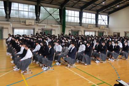 1時間目に実施した「冬季休業前全校集会」の様子です。