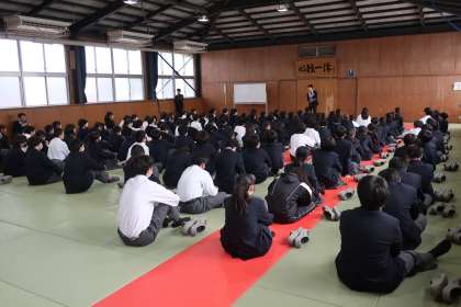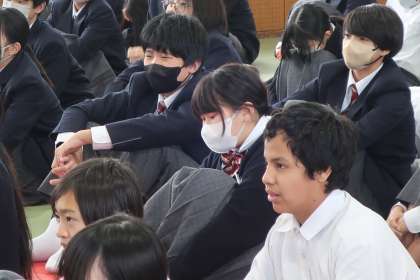 全校集会の後に行われた今年最後の学年集会・1年生の様子です。