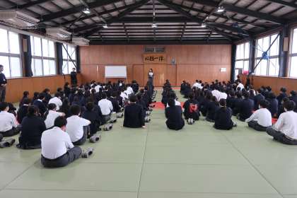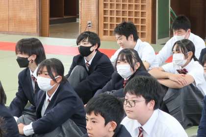 全校集会の後に行われた今年最後の学年集会・1年生の様子です。