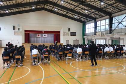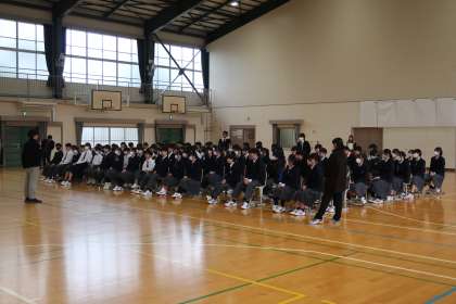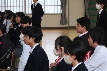 全校集会の後に行われた今年最後の学年集会・2年生の様子です。