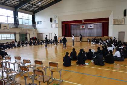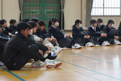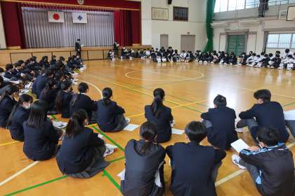 全校集会の後に行われた今年最後の学年集会・2年生の様子です。