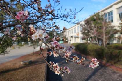 11月下旬ごろからつぼみができ始め、12月に見頃を迎える1本の桜の木。ここ2年ほどは勘違いのまま、このサイクルを続けています。周りの木々の葉がなくなり、茶色の景色が多くなる時期であるため、ひときわ目をひきます。また、通常の時期より長くその様子を楽しめるのが魅力です。