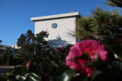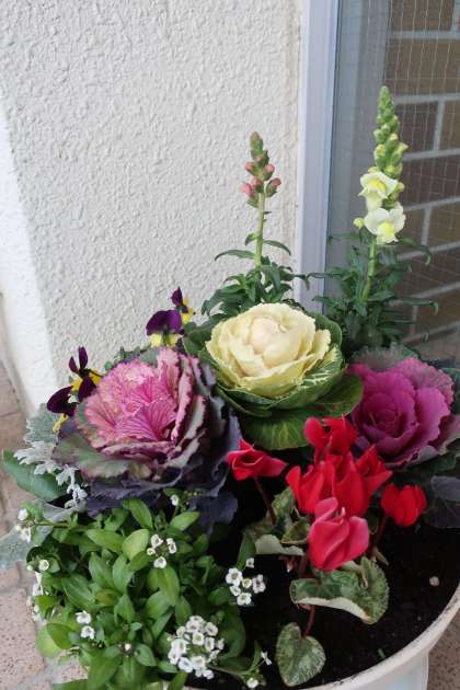正面玄関に用意された寄せ植えの鉢。新年のスタートにあたり、公務手さんが手作りしてくださいました。