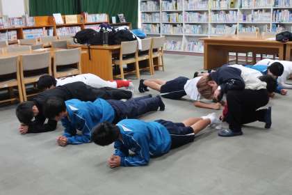 今日は屋内での活動で、座学のあとは基礎トレーニングに励んでいました。
