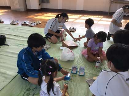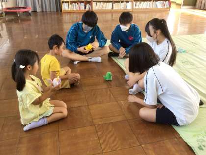 家庭科の授業で園児たちが安全に楽しめるおもちゃをつくり、どんな活動が喜ばれるかをしっかり調べるなど、万全の準備をして実習に臨みました。