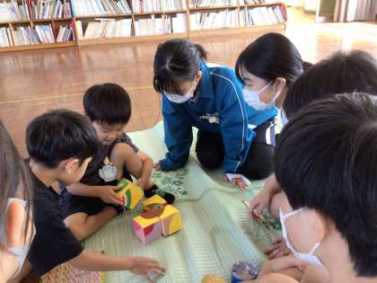 家庭科の授業で園児たちが安全に楽しめるおもちゃをつくり、どんな活動が喜ばれるかをしっかり調べるなど、万全の準備をして実習に臨みました。
