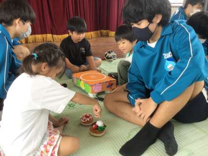 家庭科の授業で園児たちが安全に楽しめるおもちゃをつくり、どんな活動が喜ばれるかをしっかり調べるなど、万全の準備をして実習に臨みました。