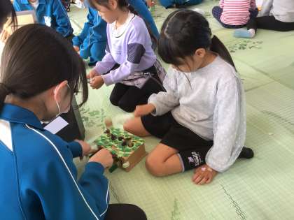 家庭科の授業で園児たちが安全に楽しめるおもちゃをつくり、どんな活動が喜ばれるかをしっかり調べるなど、万全の準備をして実習に臨みました。