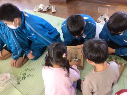 家庭科の授業で園児たちが安全に楽しめるおもちゃをつくり、どんな活動が喜ばれるかをしっかり調べるなど、万全の準備をして実習に臨みました。