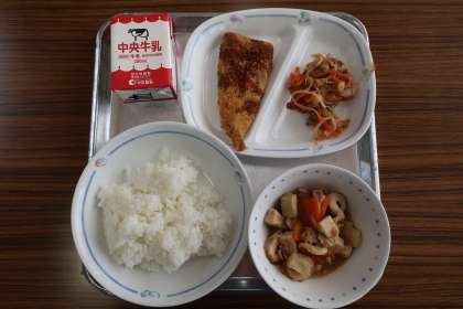 高野豆腐のうま煮、はくさいのおかかあえ、にぎすフライ、ごはん、牛乳 でした。