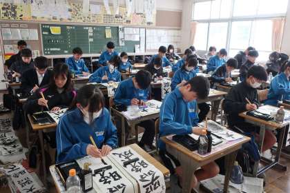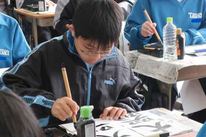 本日の2・3時間目に行われた書き初め大会・2年3組の様子です。