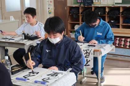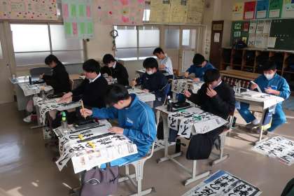 本日の2・3時間目に行われた書き初め大会・1,2学級の様子です。