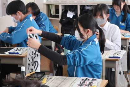 多くの生徒が入試を間近に控え、4月からの新しい環境での生活を想像しながら筆を走らせていました。