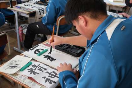 多くの生徒が入試を間近に控え、4月からの新しい環境での生活を想像しながら筆を走らせていました。