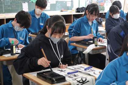 多くの生徒が入試を間近に控え、4月からの新しい環境での生活を想像しながら筆を走らせていました。