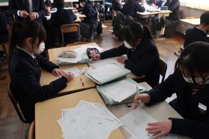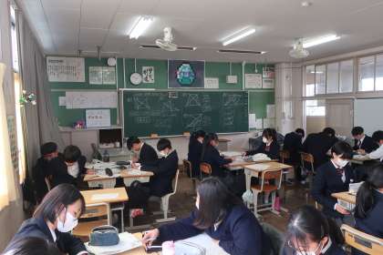 「平行線と面積の関係を考えよう」をテーマに、たくさんの演習問題で関係を理解していました。