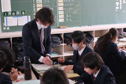 「平行線と面積の関係を考えよう」をテーマに、たくさんの演習問題で関係を理解していました。
