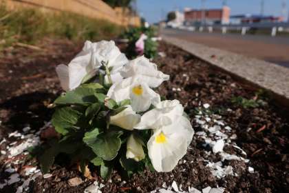 校内のプランターに植えられているパンジーに比べ、今のところは若干サイズが小さいです。日当たりの差はないですが、冷たい風を直接受けるため、サイズに差が出ているようです。小さいながらも花の数は多く、こちらはこちらでがんばって成長している様子がうかがえます。