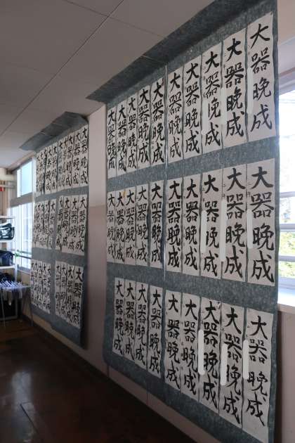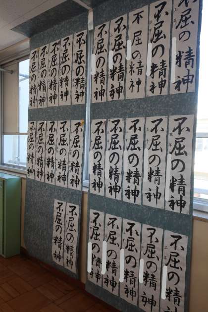 冬休み明けの初日に行われた書き初め大会での作品が、各学年のフロアに掲示されました。